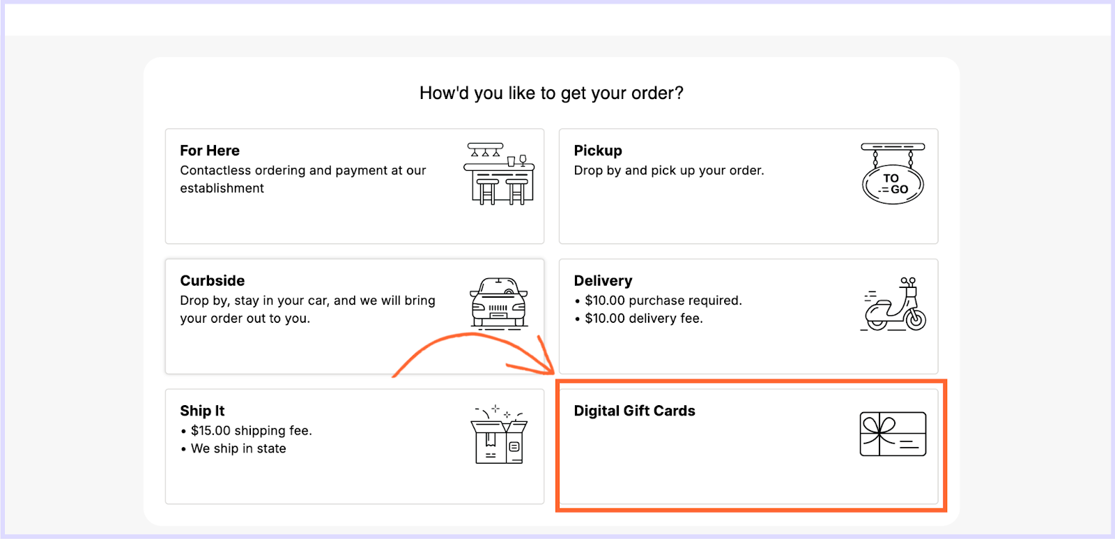 Use the Setup Guide below to implement Digital Gift Cards. P.S. We’ve made some improvements to the Gift Card Tool in your Arryved Portal, too!