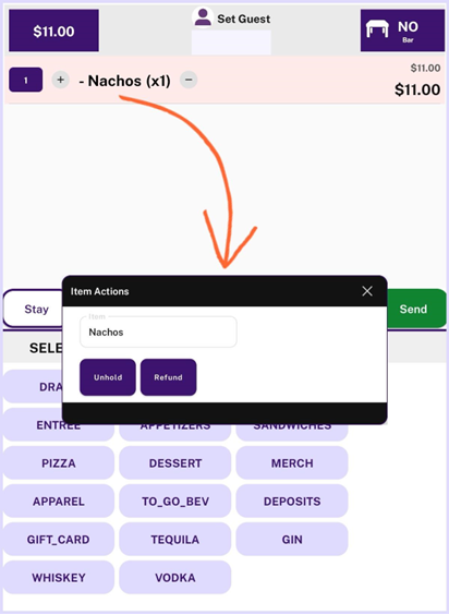 When you start a brand new tab, start adding things to the order, and the guest tells you they have a tab open already or want to be on their companion’s tab, you can merge the new tab into an existing tab with just a few clicks so it preserves the order.