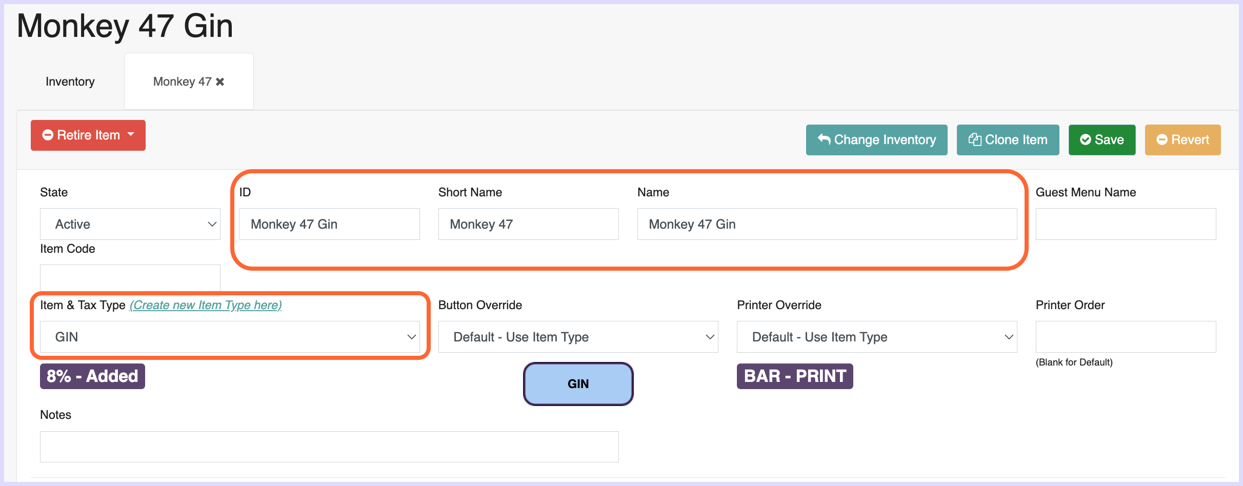 If you don’t care to track your liquor pours, there’s an easier way to add classic cocktails to your menus. Simply create the cocktails themselves as Inventory Items. Create a new ‘Cocktails’ Item Type, too.