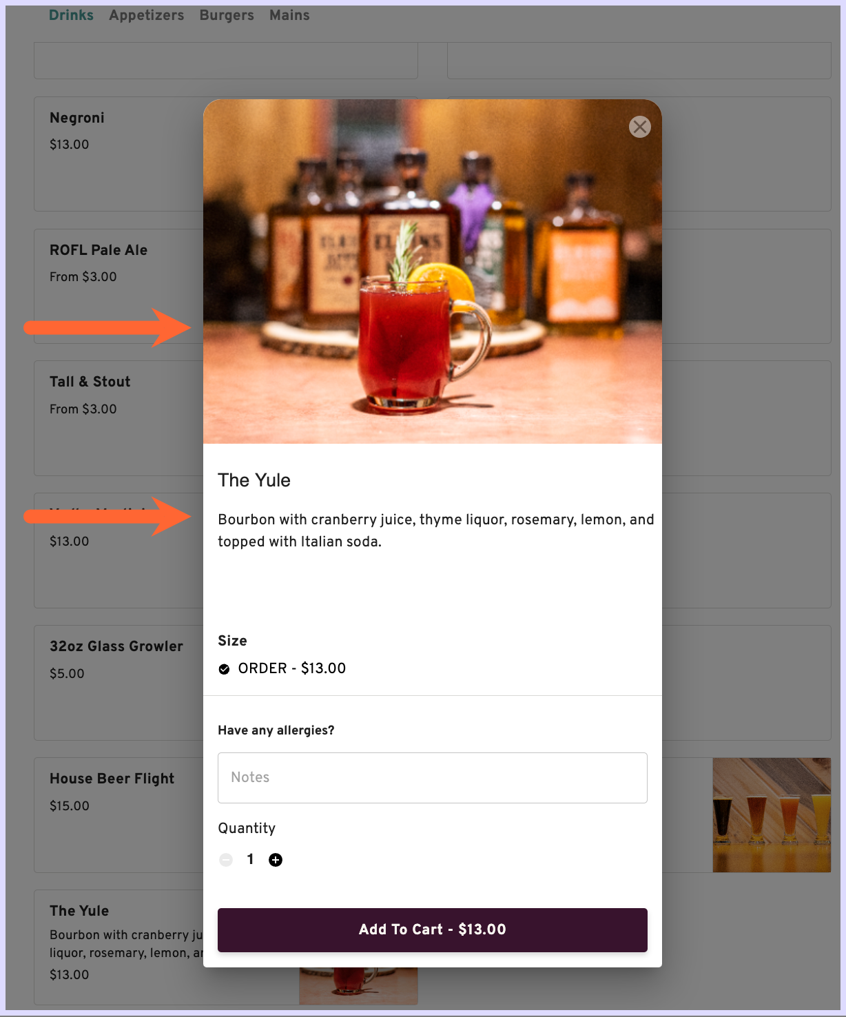 Pro Tip!: If you’re selling cocktails through Arryved Online or OpenTab, we encourage you to add Display Information, including an image and description, so that guests who are self-ordering are enticed to purchase!