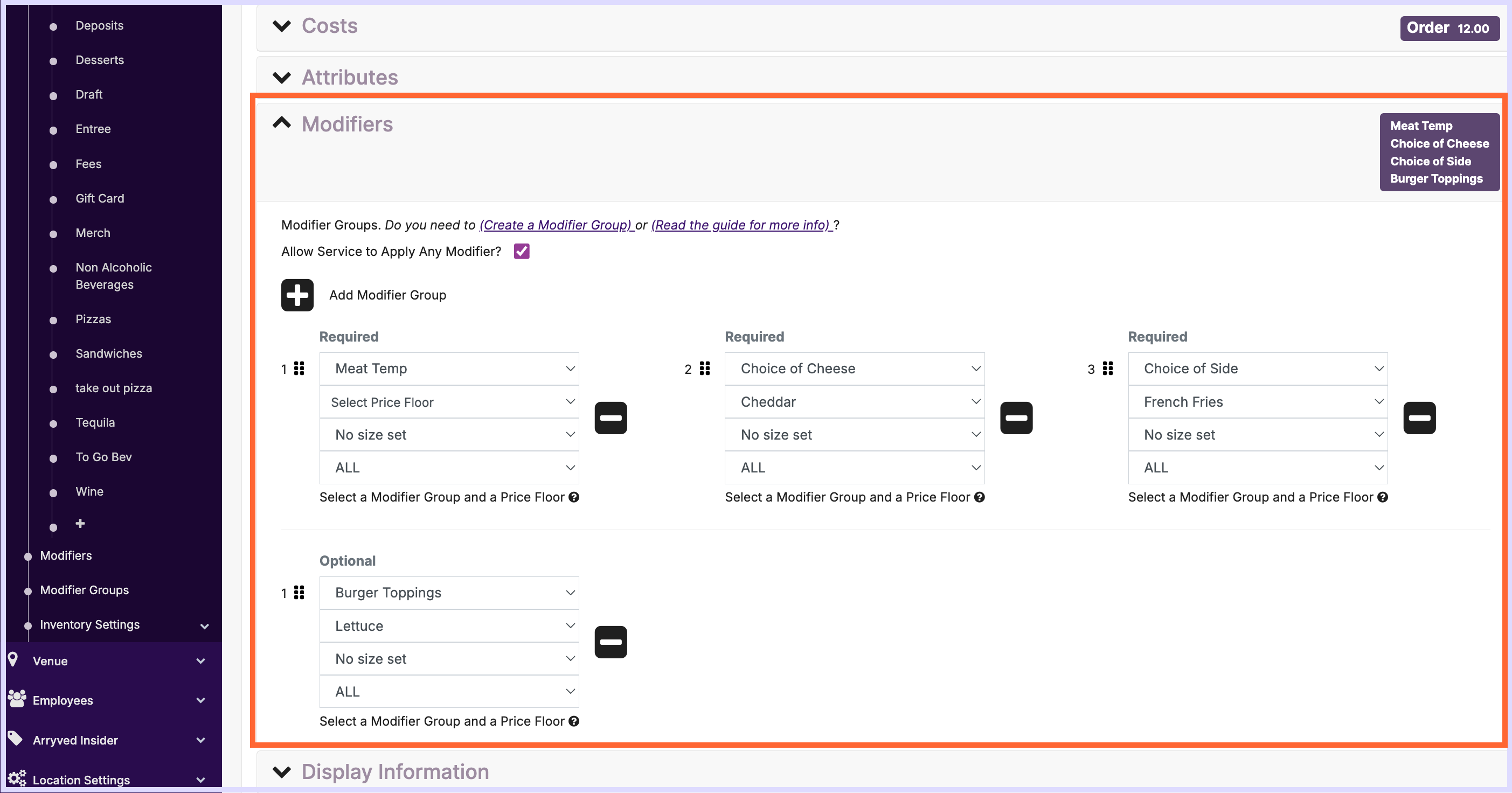 Apply any Modifier Groups that would go with this Item to streamline ordering and applying modifications.