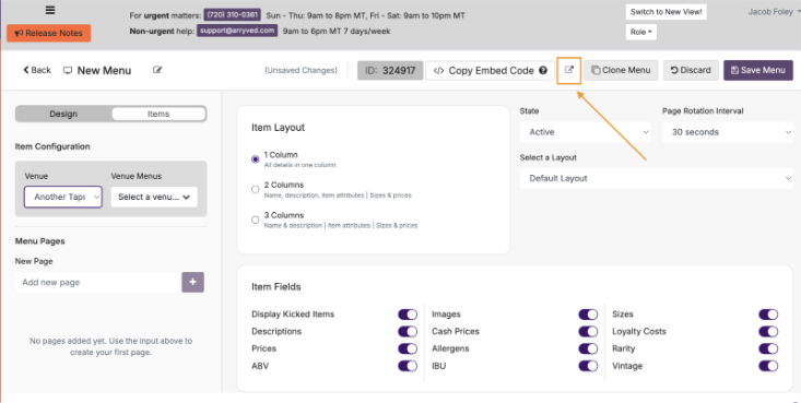 Disclaimer: Arryved Digital Menus is an additional subscription service. If you would like to have Digital Menus turned on in your environment, please contact our Sales team using the following link – Request a Demo