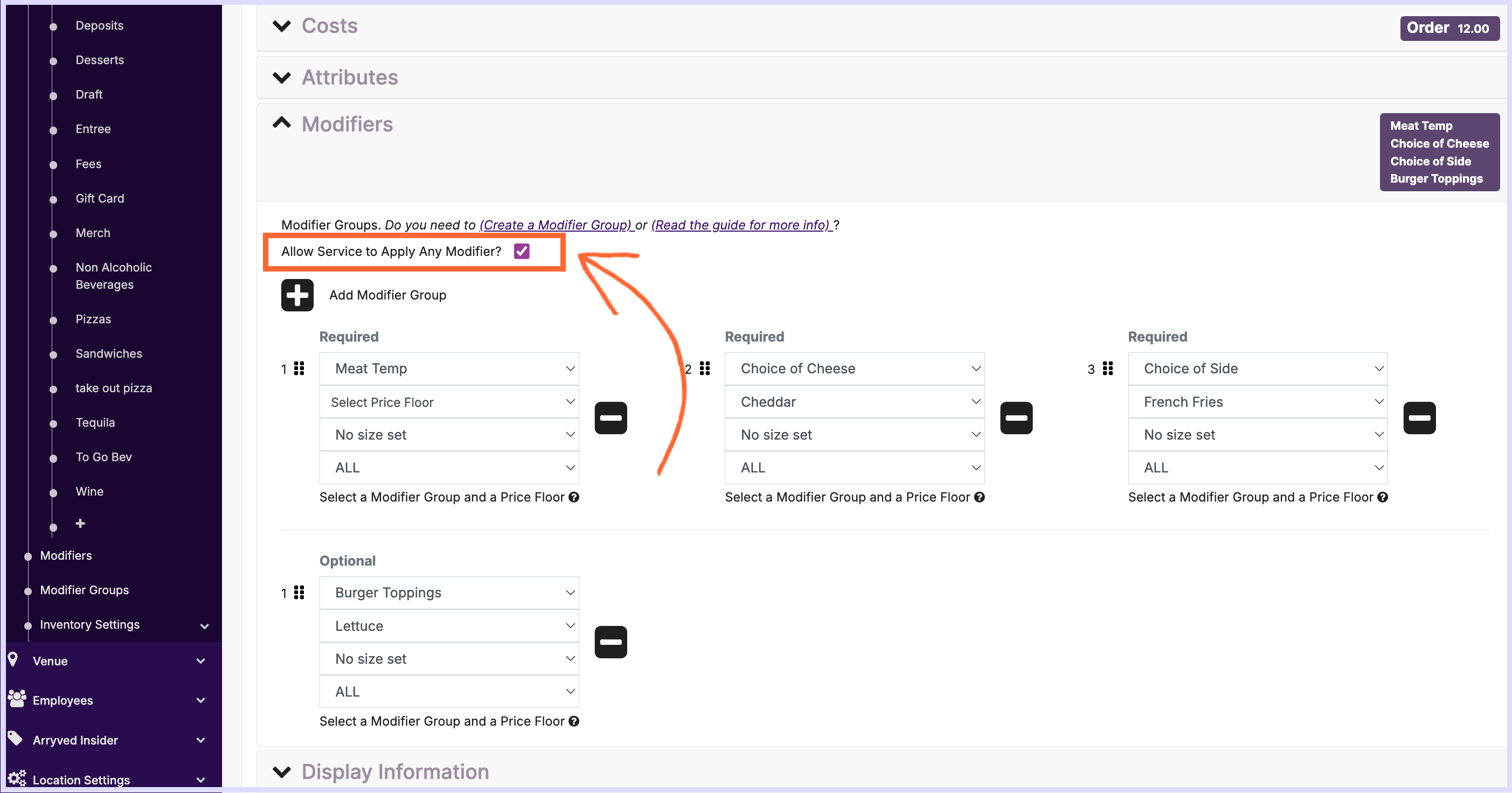 We recently revamped how Modifiers work in the Arryved system. To enjoy the latest version of Modifiers as mentioned in this guide, one of your Arryved Portal Super Admins needs to turn on the ‘Enable Modifiers V2’ Location Preference.