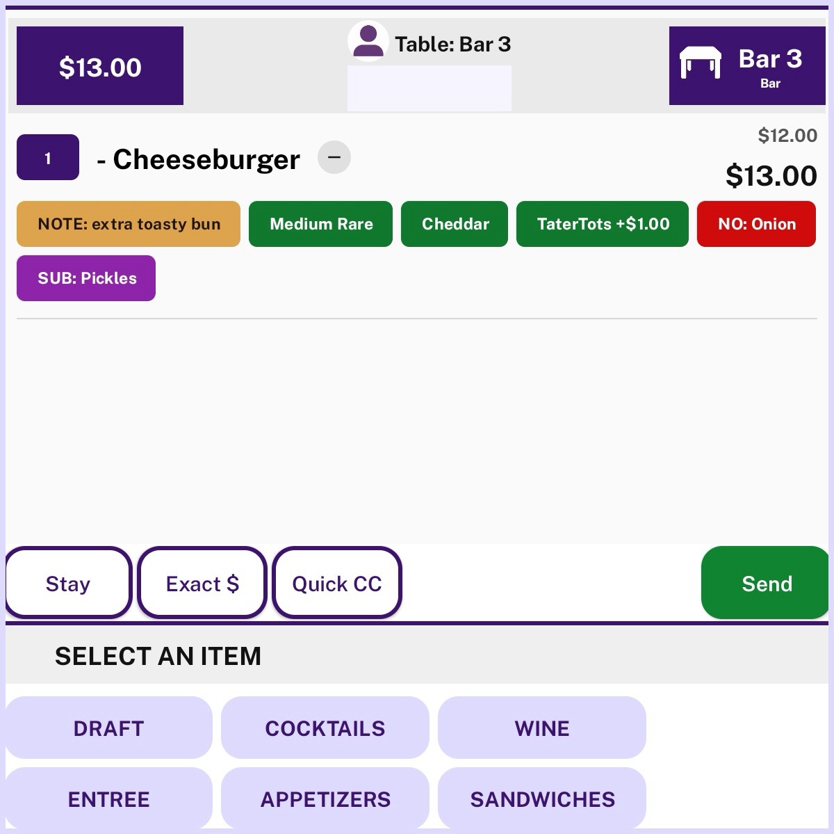 Any Modifier Groups that have been assigned to an Item will appear on the new Modifiers Screen (with a sleek new fullscreen view) when that Item is ordered.
